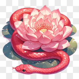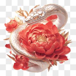 3D新年白色蛇环绕红色牡丹花免抠元素