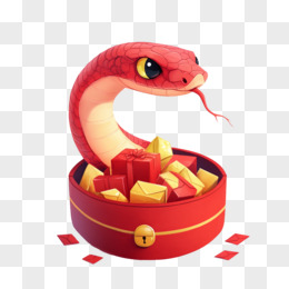 卡通新年一条从圆形礼盒中出来的红色蛇免抠元素