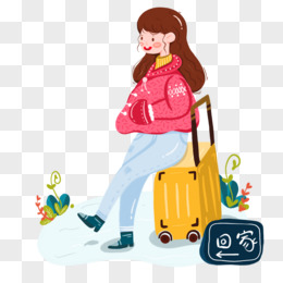 中国春节卡通女孩抱着宝箱蛇年新年元素