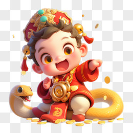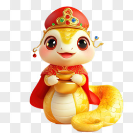 春节抱着宝箱的卡通蛇IP形象免抠元素