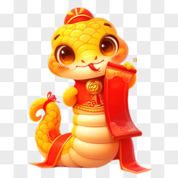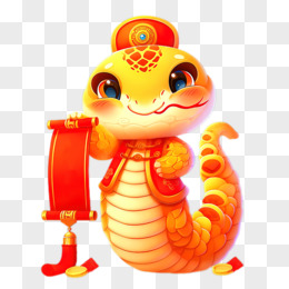 春节拿着红色卷轴拜年的卡通蛇IP形象免抠元素