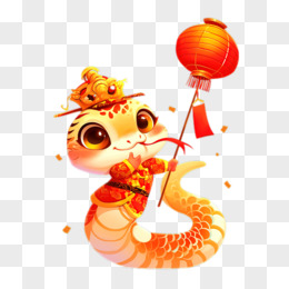 春节拿着红色灯笼拜年的卡通蛇IP形象免抠元素
