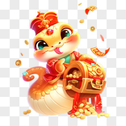 春节抱着宝箱的卡通蛇IP形象免抠元素