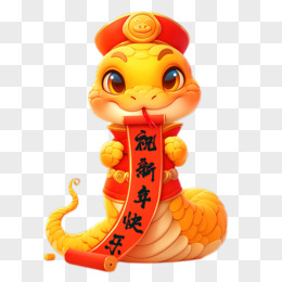 卡通3D蛇年可爱蛇IP形象拿着卷轴免抠元素