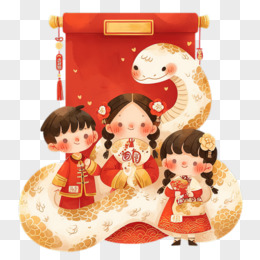 蛇年春节新年IP生肖蛇拟人3D女孩免抠元素