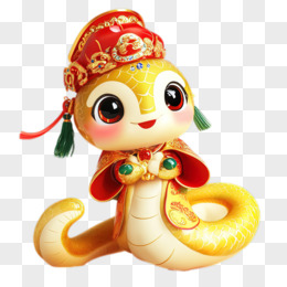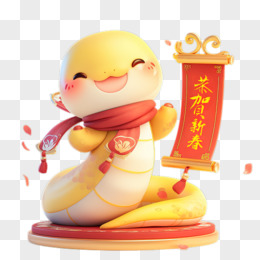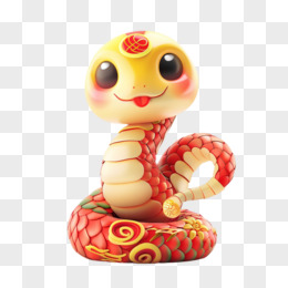 蛇年幸运财宝蛇卡通形象3D免抠元素