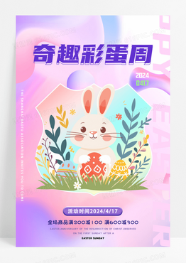 可爱手绘卡通小清新粉色复活节彩蛋和蓝色小兔子免抠素材