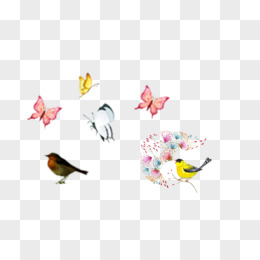 水彩可爱的小鸟蝴蝶
