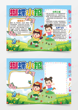 蝴蝶手抄报可爱卡通简约人物手绘花草