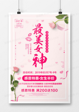 2019年三八女神节简约可爱风格海报设计