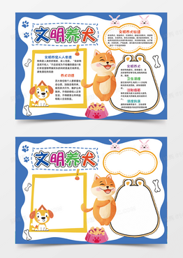 文明养犬宠物可爱插画蓝色卡通手抄报