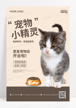 可爱风格宠物店宠物小精灵店铺开业宣传海报