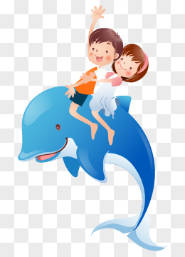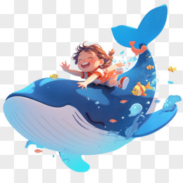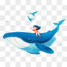 可爱卡通女孩坐在巨大的鲸鱼上免抠元素