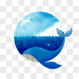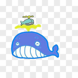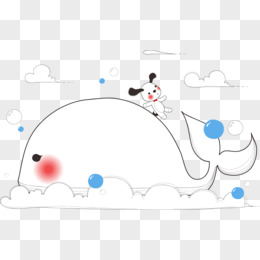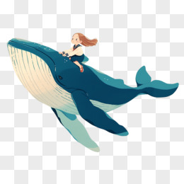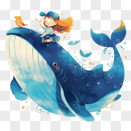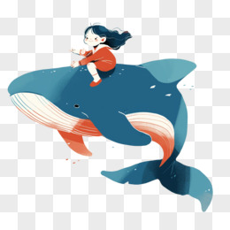 可爱卡通女孩坐在巨大的鲸鱼上免抠元素