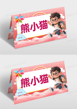 3D潮流卡通粉色可爱开学季学生姓名牌
