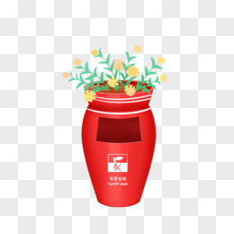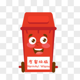 红色可爱卡通有害垃圾桶元素