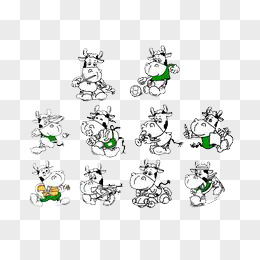 手绘可爱的牛牛插画元素