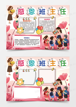 粉色感恩班主任可爱卡通辛苦了简约手抄报