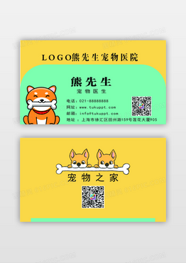 黄色蓝色可爱卡通小狗图案宠物店名片