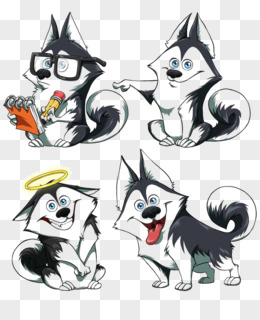 卡通风宠物小男孩和哈士奇靠在一起的背影免抠元素