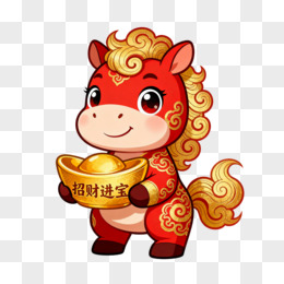 2026红衣小马捧金元宝贺岁IP形象免扣元素