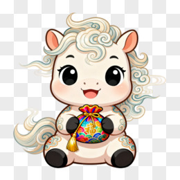 2026喜庆可爱小马手持福袋IP形象AI元素数字艺术免扣元素