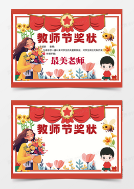教师节奖状最美老师红色背景手抄报