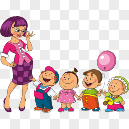 卡通小学生与老师