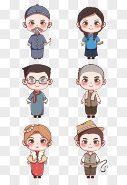 一组卡通可爱q版剧本杀民国服饰人物套图素材