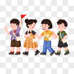 卡通手绘小朋友排队走免抠元素