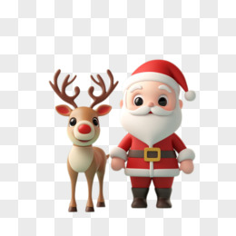 3D卡通圣诞老人牵着驯鹿免抠元素