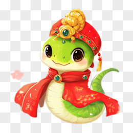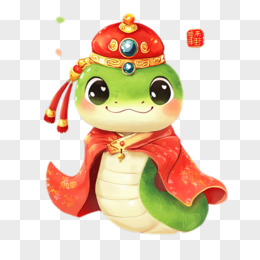 红色披风绿色蛇年卡通蛇IP形象免抠元素