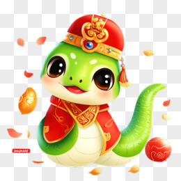 红色披风绿色蛇年卡通蛇IP形象免抠元素