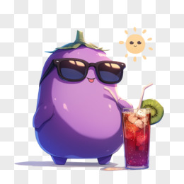 卡通蔬菜拟人戴墨镜的茄子在太阳下喝可乐免抠元素