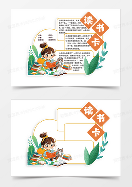 手绘简约绿色长颈鹿边框装饰可爱读书卡png线条