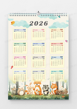 米黄色可爱动物2026马年日历挂历2026日历设计