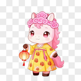 马年春节可爱小马拟人形象卡通马IP免扣元素灯笼马