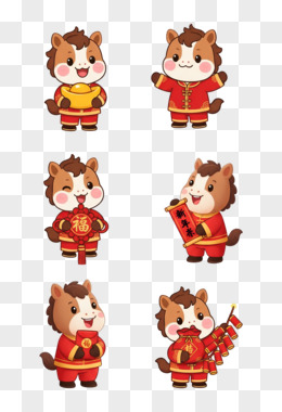 2026喜庆小马传统服饰装扮IP形象免扣元素