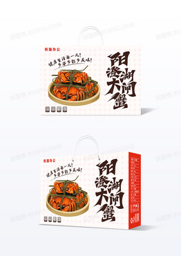 红色简约阳澄湖大闸蟹螃蟹包装盒