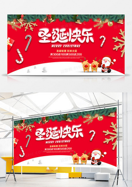 卡通可爱风圣诞老人喜庆圣诞节促销展板