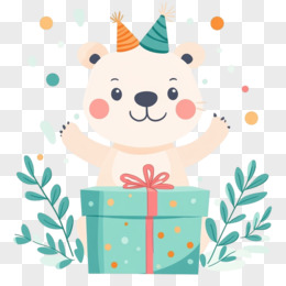 一组生日派对可爱贴纸装饰套图之生日礼物元素