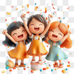 3D立体生日派对聚会欢呼可爱女孩免抠元素
