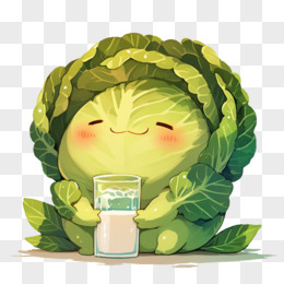 卡通蔬菜拟人可爱的卷心菜在喝牛奶免抠元素