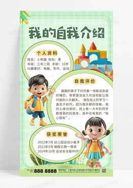 绿色可爱手账风学生自我介绍儿童幼儿园海报