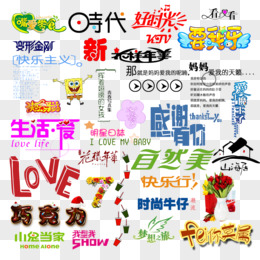 一组生日派对可爱贴纸装饰套图之生日文字元素