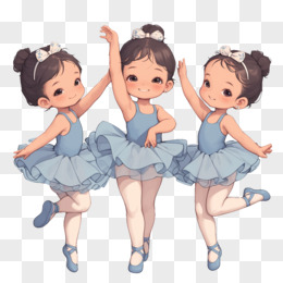 卡通风教育三个小女孩芭蕾舞兴趣班免抠元素