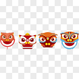 手绘插画风可爱舞狮狮子头元素