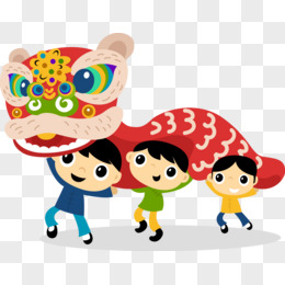 卡通可爱人物新年习俗舞狮元素