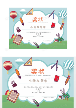 可爱幼儿园奖状