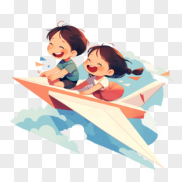 卡通手绘可爱女孩男孩坐纸飞机免抠元素